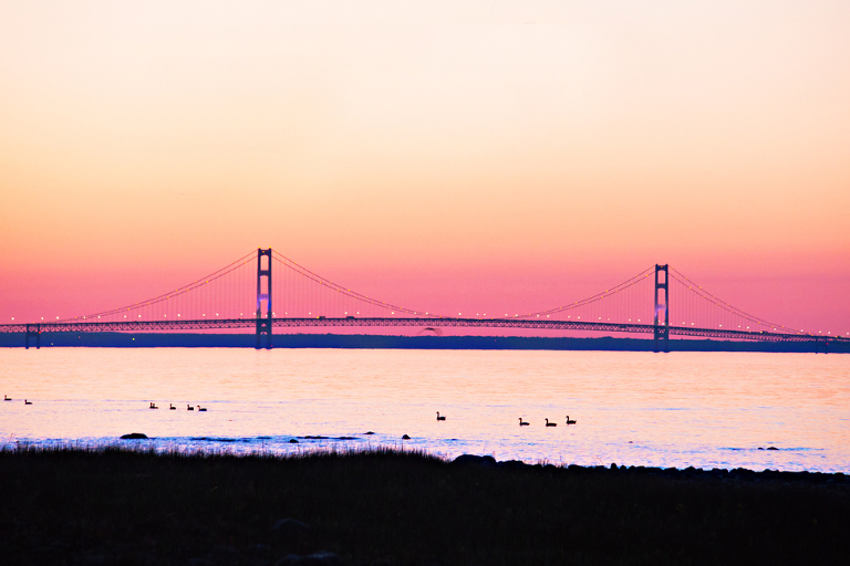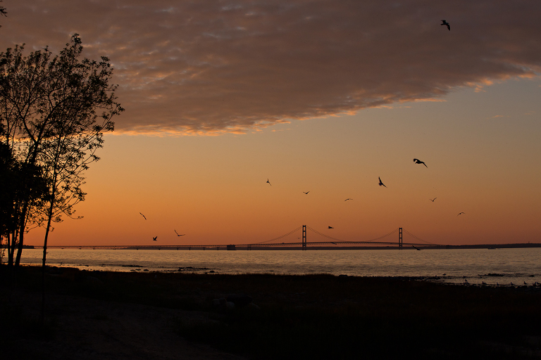A few weeks ago my husband and I spent almost the whole weekend in Mackinaw City/Mackinac Island. I say almost because we only made it one night, don’t judge. We didn’t take into account how far north we would be and in early June, it’s still quite cold up there. 40 degree nights were not quite what we were looking for since we were tenting it and the bugs, oh my the bugs. I thought my husband was going to go ninja on these bugs at any minute, free entertainment lol. But after some should we stay, should we go debate and yummy hobo dinners, we packed it up about 10 o’clock in the evening. I was determined to get some sunset shots. I love that golden hour and our view was AWESOME. Here are a few photos from the island and the surrounding areas.