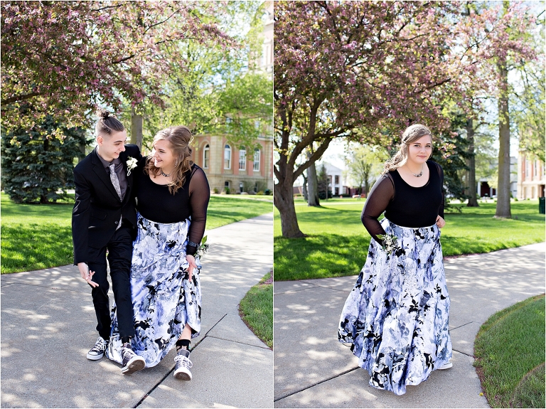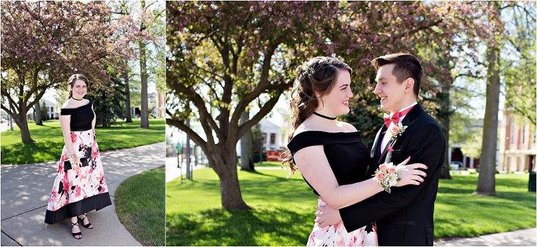 Our original shoot spot was a bit too soggy after all the rain we had gotten so we headed over to the Goshen Courthouse. The flowering spring trees made the perfect backdrop for everyone including Mikayla and her date. Loving the black dress shirt too.