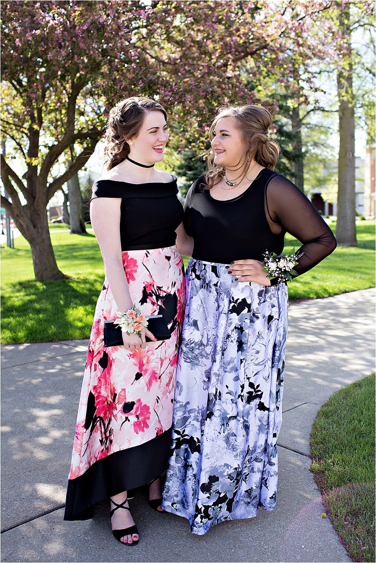 I loved Kate’s off the shoulder dress and colorful floral skirt. Jocelyn is obsessed with anything 50’s so it wasn’t surprising to see her in a pretty 50’s inspired party dress. Her friend Makenna joined her at The Oaks in Mishawaka for their homeschool prom.